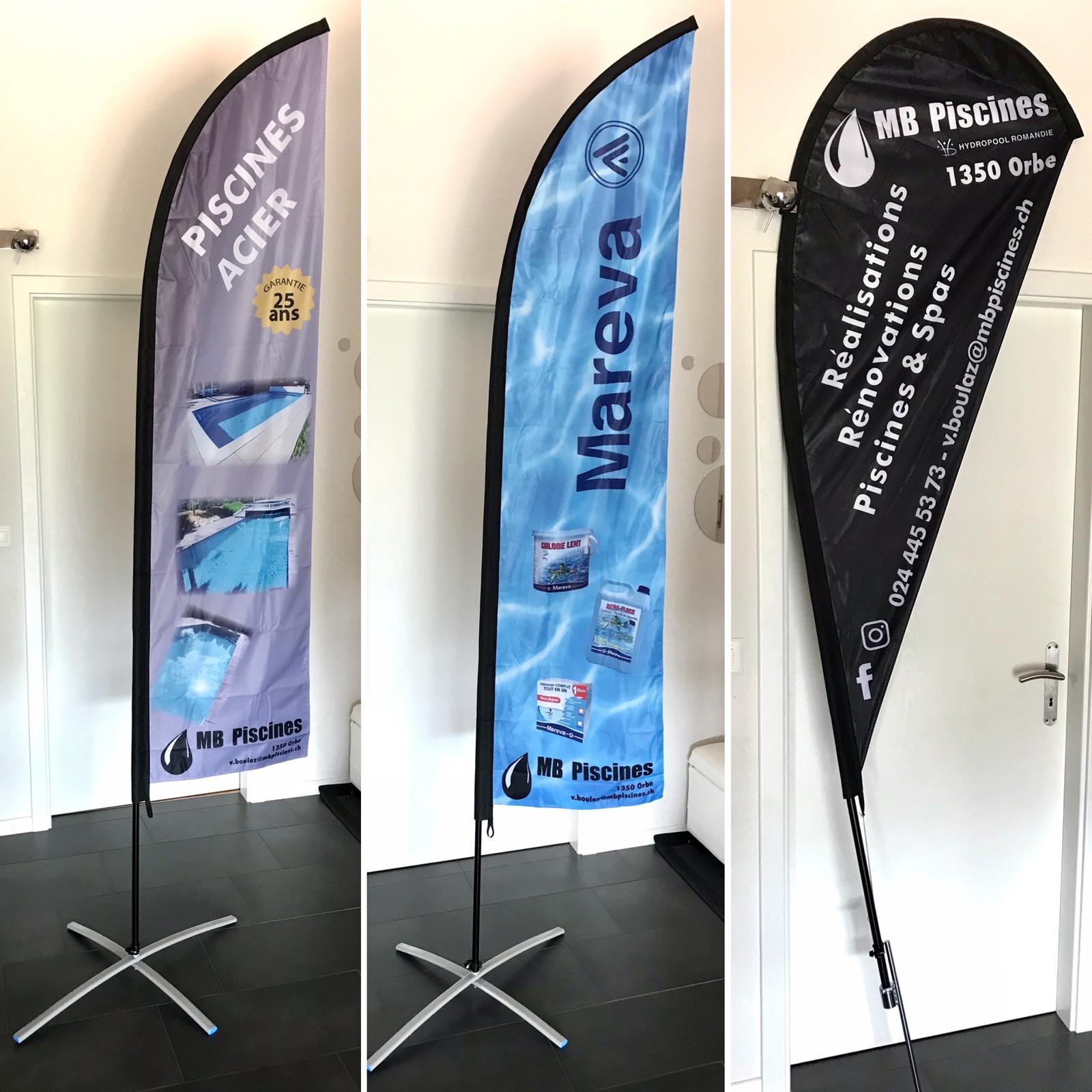 Les oriflammes sont un support publicitaire incontournable pour mettre en avant votre commerce, votre stand ou votre événement. Grâce à leur grande visibilité et leur mouvement au vent, ils attirent immédiatement l’attention. Disponibles en plusieurs formes et tailles, avec impression simple ou double face, ils sont parfaits pour dynamiser votre communication en extérieur comme en intérieur.