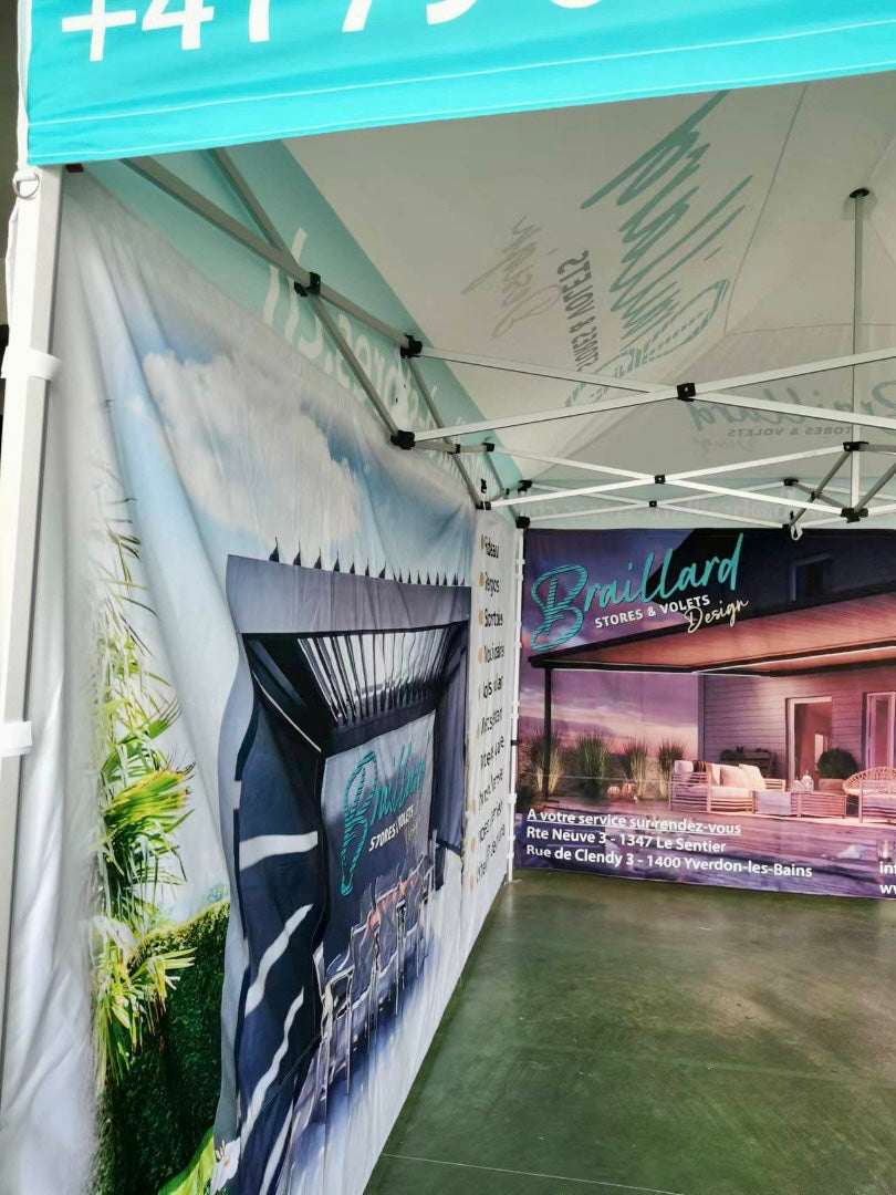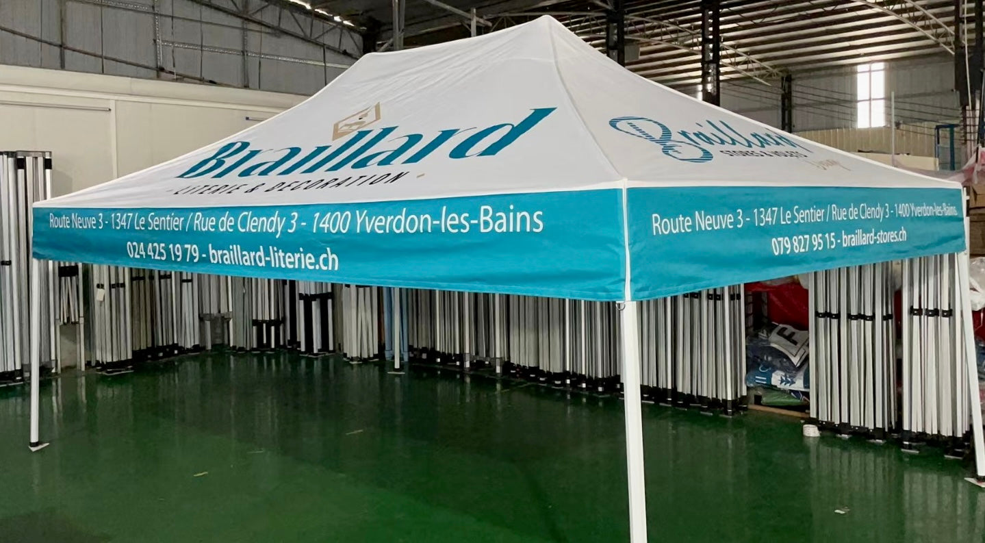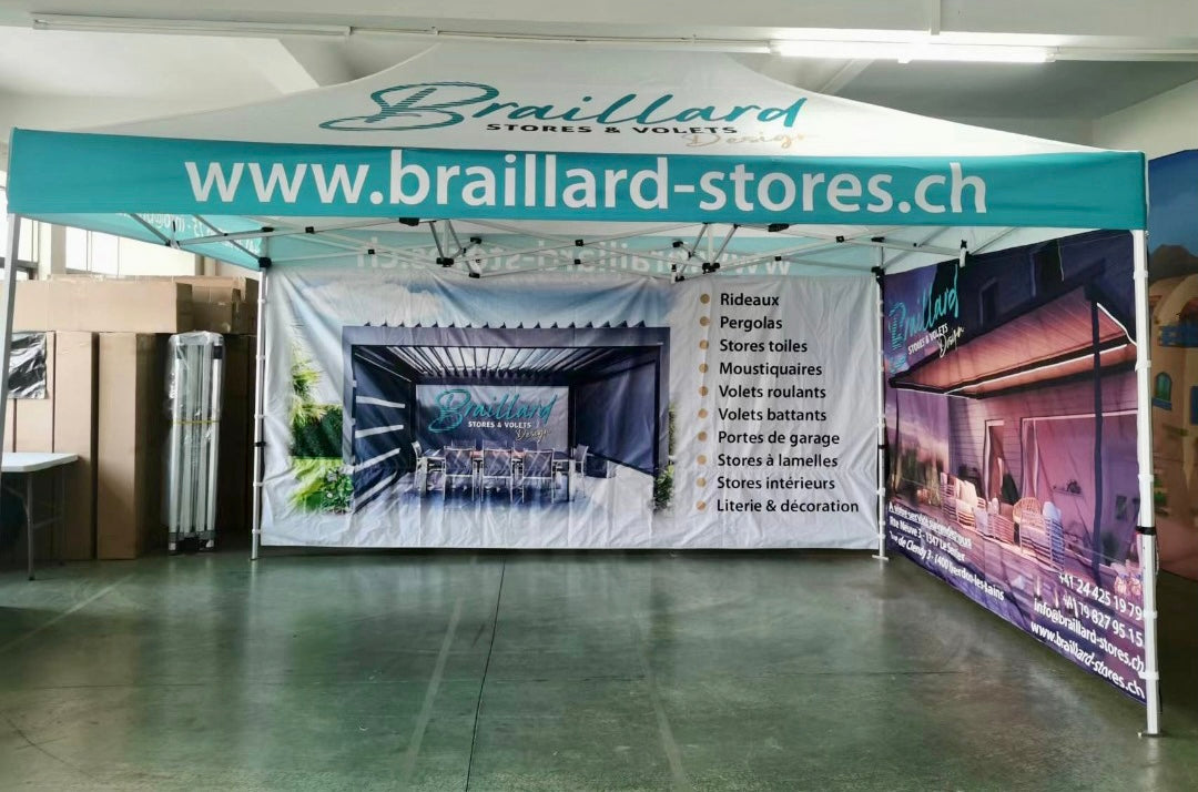 Les tentes pliables personnalisées vous offrent un espace pratique, visible et entièrement à vos couleurs. Faciles et rapides à monter, elles sont idéales pour vos salons, marchés, événements sportifs ou animations en extérieur. Solides et modulables, elles vous garantissent confort et visibilité tout au long de vos événements.