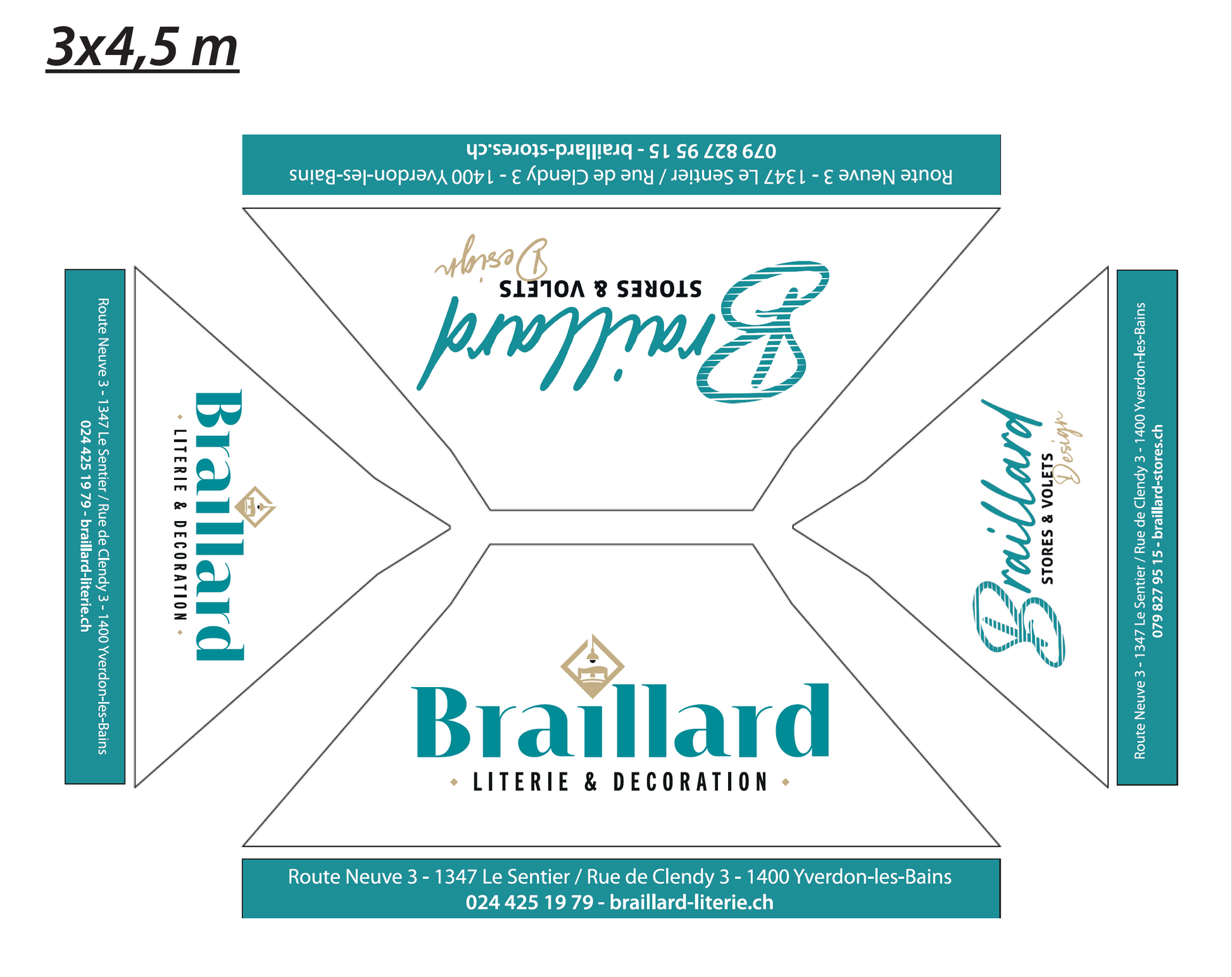 - ✔ Tailles disponibles : 3x3 m, 3x4,5 m, 3x6 m, 4x6 m, 6x6 m, 6x8 m